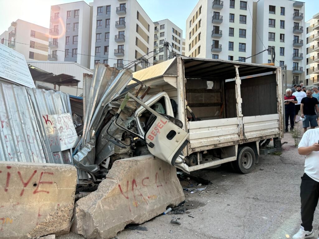 Kamyon beton bloğa çarptı, sürücü yaralandı