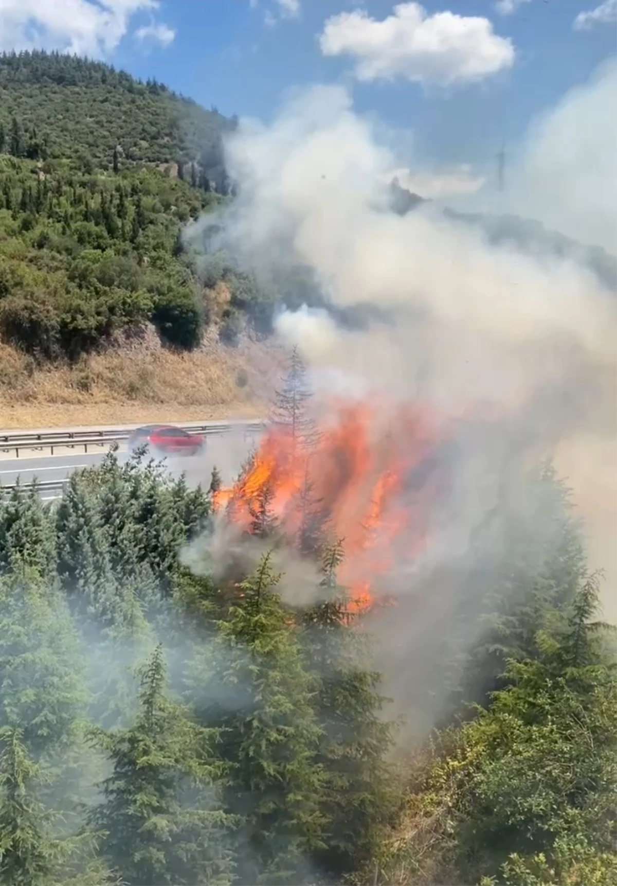 Körfez’de TEM Otoyolu’nda Yangın Çıktı