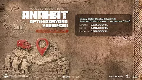 TEKNOFEST Havacılık, Uzay ve Teknoloji Festivali kapsamında Hepsiburada yürütücülüğünde düzenleyeceği ‘Yapay Zeka Destekli Lojistik Anahat Optimizasyonu Yarışması’ başvuruya açıldı. Türkiye genelindeki teknoloji alanındaki genç yetenekleri bir araya getirecek yarışma, bu yıl lojistik sektörünün en kritik alanlarından biri olan anahat taşımacılığında makine öğrenmesi destekli optimizasyon çözümlerine odaklanacak. Yarışma başvuruları 22 Mart tarihine kadar kabul edilecek.